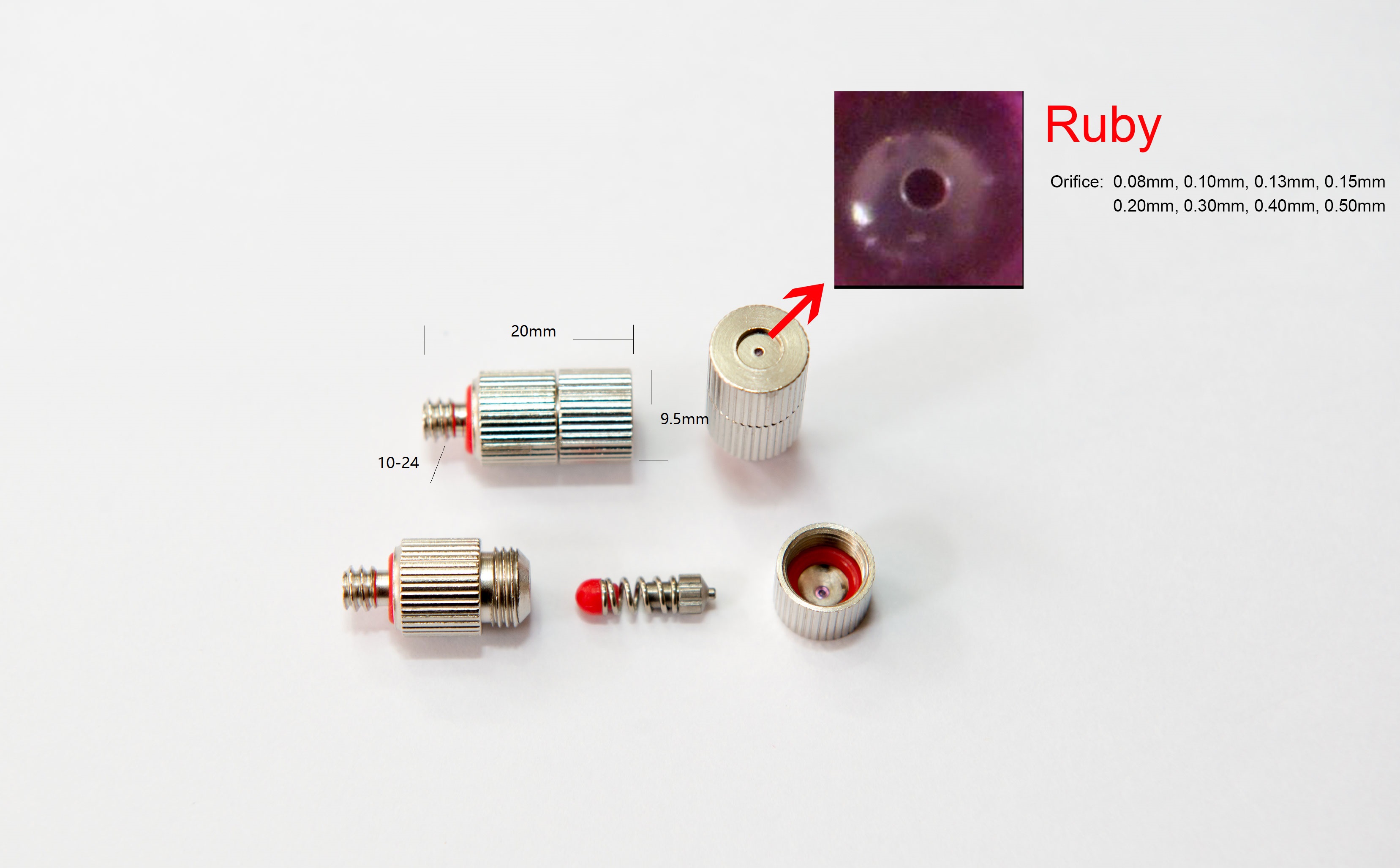 All our nozzles can be easily disassembled and cleaned, providing years of reliable usage. Ruby misting nozzles have a powerful built-in anti-drip valve that prevents the nozzles from dripping after the pump is turned off.